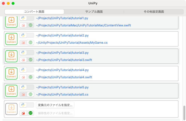 ではいよいよUniPyアプリでコンバート処理をしてみます。