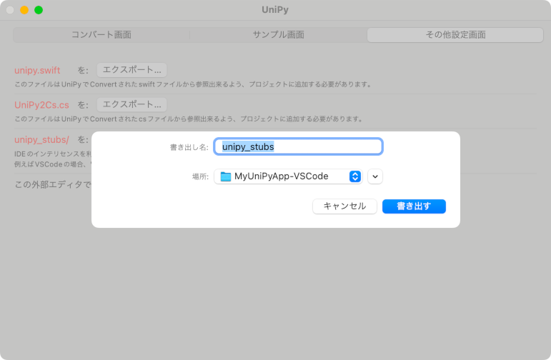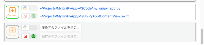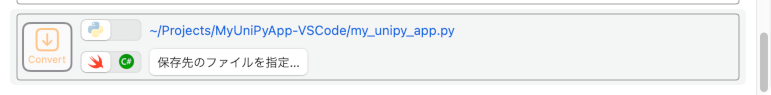 (ここでは「~/Projects/MyUniPyApp/MyUniPyApp/unipy.swift」としました)
