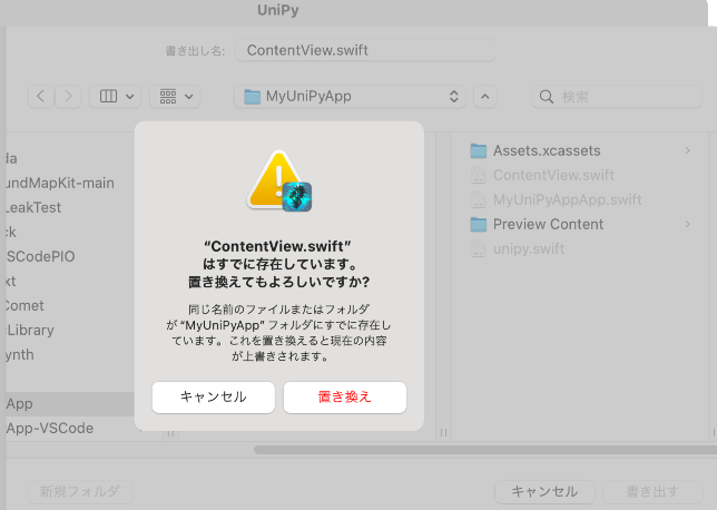 (ここでは「~/Projects/MyUniPyApp/MyUniPyApp/ContentView.swift」)